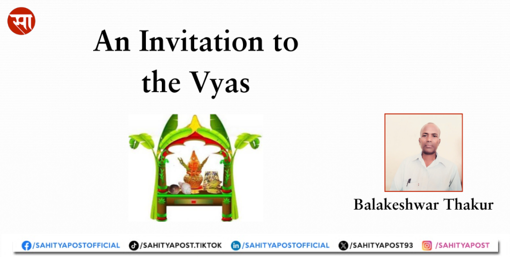 Gracious Vyas, we with our pure heart request you to kindly accept our cordial invitation to the simple dinner party we are throwing tomorrow evening at about this time on the occasion of settling in our hard-earned new home. We are going to bring you your dish here before our invitees partake of the feast.