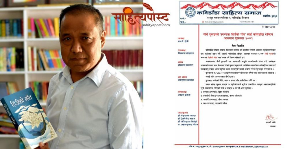 Kavidanda Sahitya Samaj, a literary organization, has announced the winner of the ‘Kavidanda National Fiction Award 2081’ through a press release today. The award has been announced for novelist Tirtha Gurung’s novel Heu ko Geet (Song of Snow), an honor the Society presents annually.